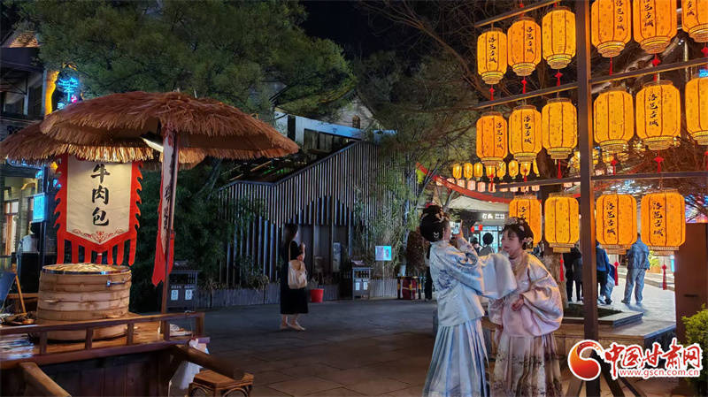 r夜幕降临,华灯初上。位于洛阳市老城区的洛邑古城内,身着汉服的年轻游客穿梭于古街巷陌,衣袂飘飘间,仿佛穿越回“梦里隋唐”的繁华盛世。