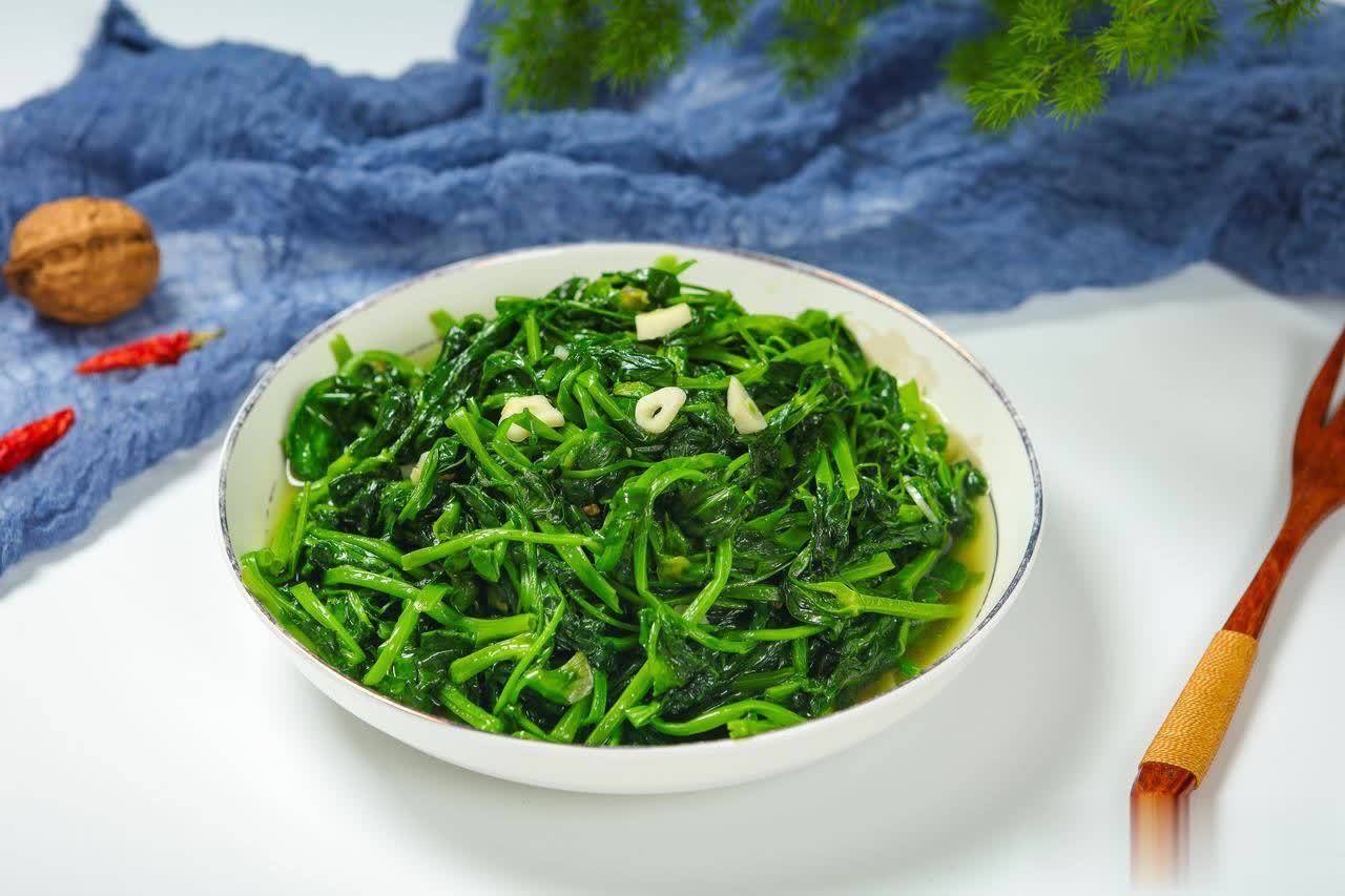 空心菜虽然是夏秋常见,但大棚里春天也能买到不错的。它性寒,能解食物中的毒,对肝脏代谢酒精和药物残留特别有帮助。空心菜洗净掐段,蒜末要多,热油爆香蒜末后大火爆炒,淋一勺料酒增香。记住炒空心菜不能盖锅盖,否则容易变黑。蒜香浓郁,菜梗脆嫩,配上一碗杂粮饭,就是完美的一餐。